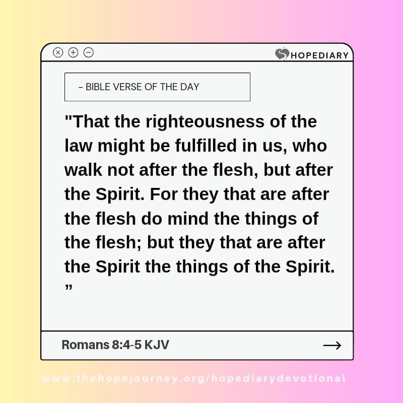 In Romans 8:4-5, the Apostle Paul continues to explore the transformative power of the Holy Spirit in the life of a believer. These verses highlight the contrast between living according to the flesh and living according to the Spirit. They remind us of the importance of yielding to the Spirit’s guidance to experience true freedom and righteousness.